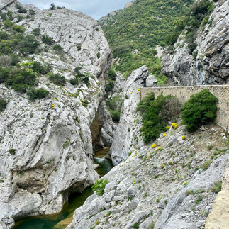 Et nous voilà arrivés aux gorges de Galamus … la petite route étroite et sinueuse se faufile entre ces grandes parois rocheuses à pic, ouaw c’est magnifique et impressionnant!